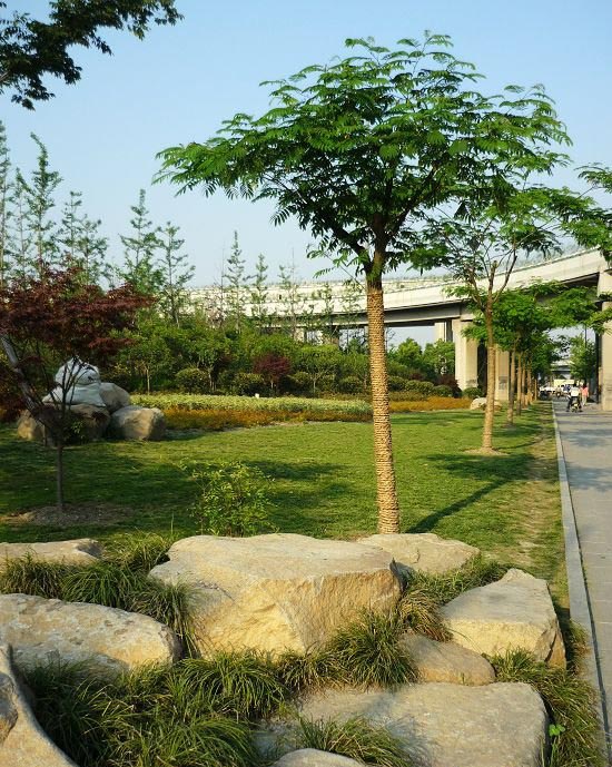 编者按:杭州市“优秀绿化工程”是杭州市园林绿化行业在工程质量方面的专项奖,获奖的工程其质量代表了杭州市先进水平。“优秀绿化工程”由杭州市园林绿化行业协会组织评审颁发。奖项按公园绿地、道路绿地、居住绿地划分,暂设金奖、银奖和优胜奖。“优秀绿化工程”暂定每年评选一次,中国风景园林网集中展示08年杭州市优秀绿化工程,以飨读者。 ![]() 一、工程概况 该工程总绿地面积为65000平方米,合同造价1040.3872万元。施工内容包括石祥路两侧(上塘路至运河段)、巨州路以西地块土方工程、景观施工及苗木种植。其中景观施工包括:自然石堆砌,驳岸砌筑,园路、广场、树池、景观小品等的施工,绿化喷灌系统的布置。于2007年07月15日开工,2008年10月28日竣工。 二、主题设计 石祥路两侧(上塘路至运河段)景观注重塑造自然起伏的地形,绿化以苗木搭配种植为主,在几个主要出入口两侧,均用自然石堆砌成挡墙,打破了原本生硬的直线条,更加贴近自然。而巨州路以西地块的景观最能体现"汽车文化"的内涵。在入口铺装形式上采用"轮胎"的影像作为参照,流畅的线条勾画出飞驰后的痕迹,带给人们一种永不停息、不断追求的信息;而与之衔接的老石板园路、小青砖广场又带着些许沧桑,它们融合在一起,讲述着杭州汽车城的昨天、今天、明天。 三、独特布局 石祥路绿化工程以建设"快速生态交通走廊"为目标,以绿色生态主构架形成杭城北线快速通道的形态总面貌,以"一廊、三轴、四区、五节点"的景观总体结构布局构建杭州北部具有浓郁都市生活气息、方便快捷的生态景观大道。 四、植物搭配 为营造出不同于其它城区的"人造森林景观"的设计要求,着重强调植物种类的多样性和景观效果,尽可能多的增加绿地面积和绿化量。以乔木种植为主,通过乔、灌、地被、草的综合应用,常绿与落叶树种、观花和观叶树种的配合形成季相变化明显、上中下层次分明的植物景观,再增加观花、观形、色叶树种,营造自然生态的绿化空间。建成后的该路段将形成四季有花、夏荫冬青的城北生态景观大道。 五、结论 该工程所呈现的园林景观很好地体现了设计意图,不仅建成了杭州北部具有浓郁都市生活气息、方便快捷的生态景观大道,更是融合了"汽车文化",兼具了景观性和服务性,既为游人提供休憩、赏景、交流的场所。 ![]() ![]() ![]() ![]() ![]() ![]() ![]() |