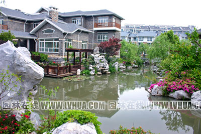 在植物配置上,景元的宗旨是因地制宜、适地适树,但不排除引进外地优良的、能够适应本地环境生长的树种。我们以乡土树种为主、生物多样性为原则,提高植物群落的抗性和韧性。并采用植物的顶级设计手法,这并非简单的乔灌草组合,而是充分发挥植物的各种功能和观赏特点,合理配置,构成多层次的复合生态结构,成为自然和谐的人工植物群落,使乔木、灌木、草本植物共生,使喜阳、耐阴、喜湿、耐旱的植物各得其所,从而充分利用阳光、空气、土地、肥力,构成一个相当长期稳定很少需要人工管理干预的有序的顶极植物群落。 细节中体现生态园林的理念:古桥、湖石、绿化车库、“拿来”植物 陈相强:在现代城市化和旧城改造的大潮中,想在一个普通的住宅区里寻找城市历史遗存绝非易事。而我们在设计时发现景元小区的河道上有一座两百年以上历史的残破古桥,原来的规划中这座古桥要被拆掉,我们向开发商提议,为了延长景元的历史,古桥给予保留。现在古桥一端入口处被围墙拦住,上面还保留“拆”字,另一端野花朵朵盛开,给了住宅区一种别样的美和味道。这种景观的做法和处理,在别的住宅区内很少见到。既非文物保护,又不同于一般江南古典园林式营造,除了达到延长景元历史的目的外,还给普通的住宅区增加新的景观元素。 景元小区的概念设计是由新加坡的设计公司来做的,整体风格比较现代、欧化,后来我们在景观河和九曲桥的具体设计中,加入了中国传统造园的理念和元素。然而更能表现江南园林独特韵味的,则是几栋私家别墅的叠石理水。太湖石叠成的假山和驳坎,传统的曲栏和花架,桃红柳绿的植物配置,以及“水通意远,藏曲萦绕,莫辩来踪去迹”的理水模式。再现了“一拳石则太华千寻,一勺水则江湖万里”的古典园林中“壶中天地”的艺术境界。